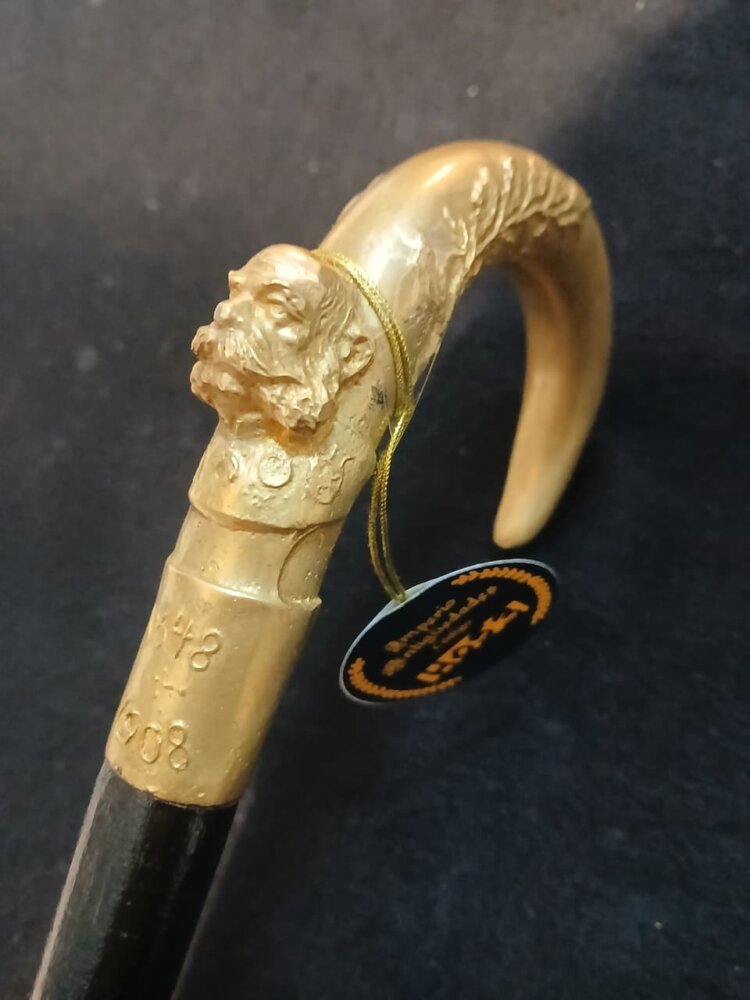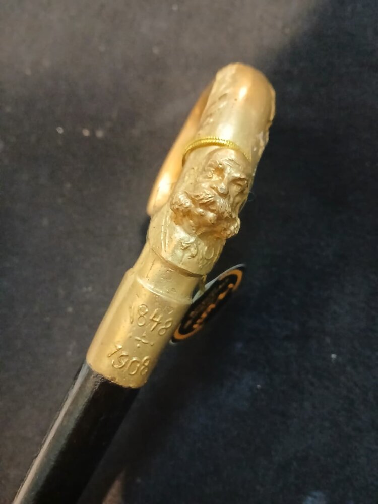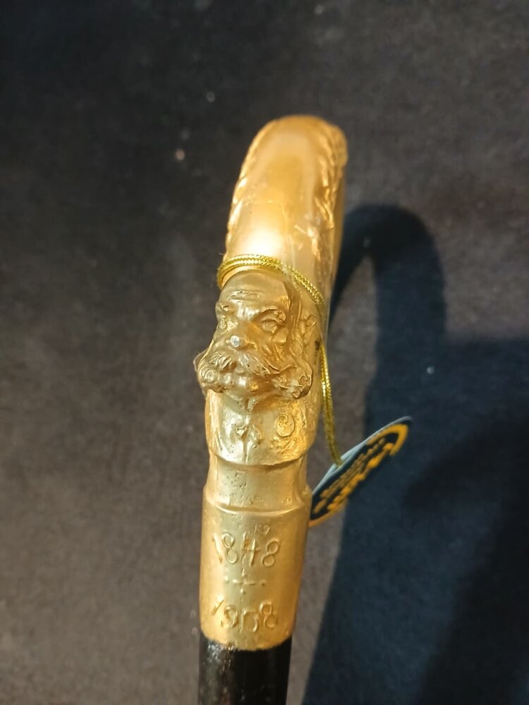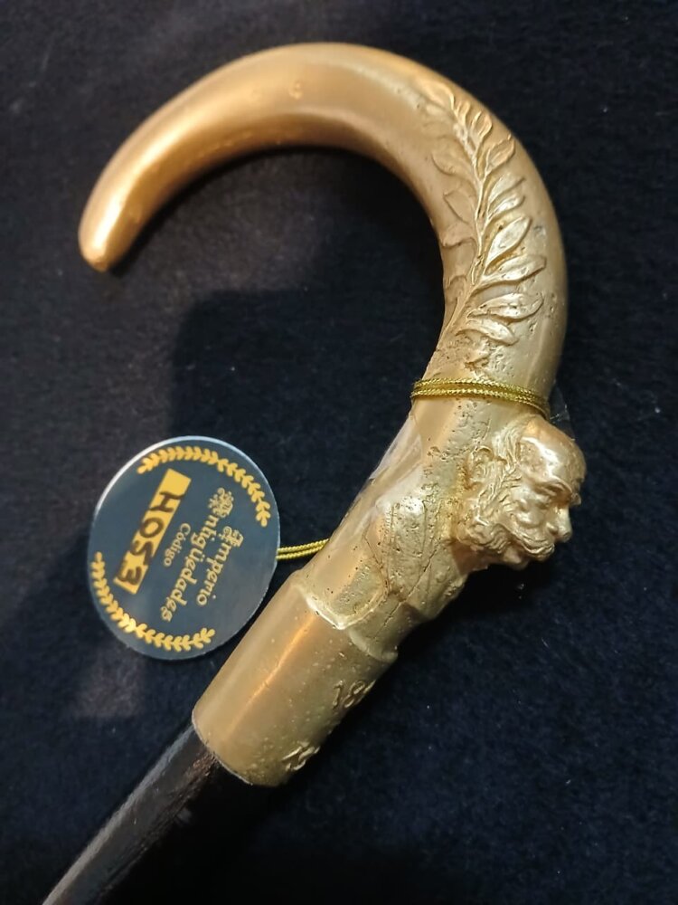 Antiguo Bastón realizado en madera , con mango en bronce , con un Emperador cincelado y las fechas de su vida.De coleccion. , en muy buen estado con madera laqueada.