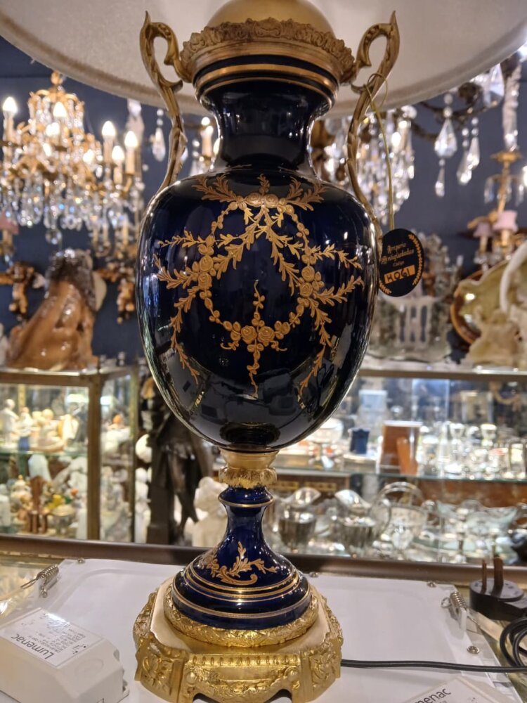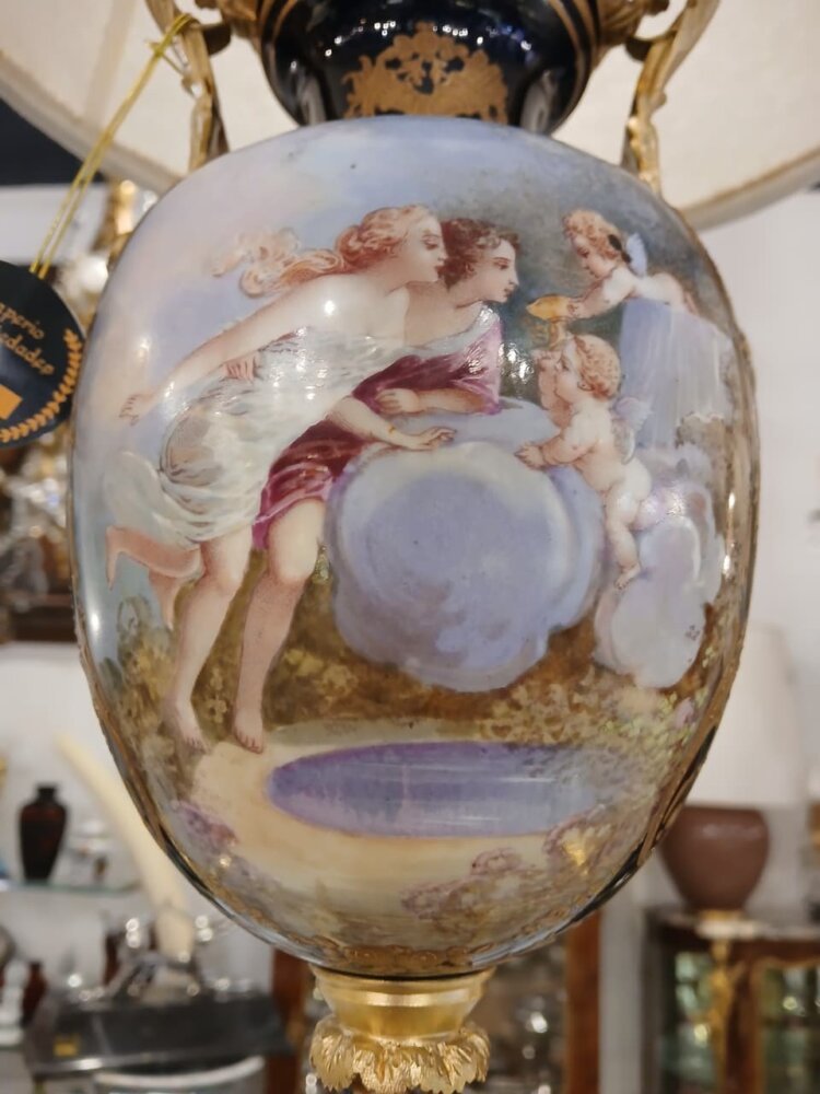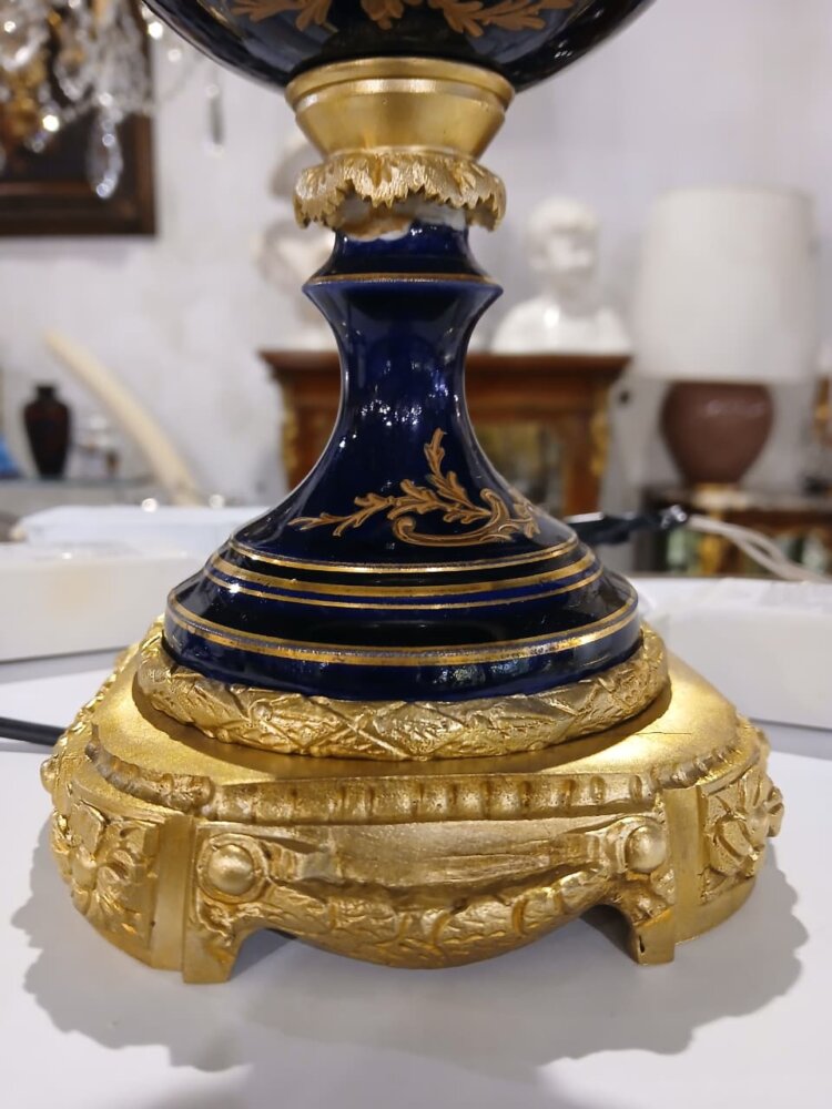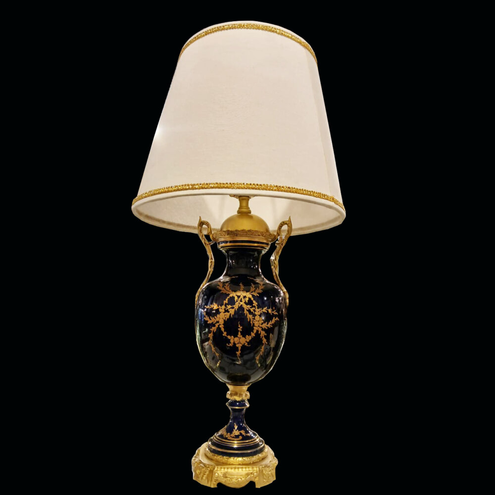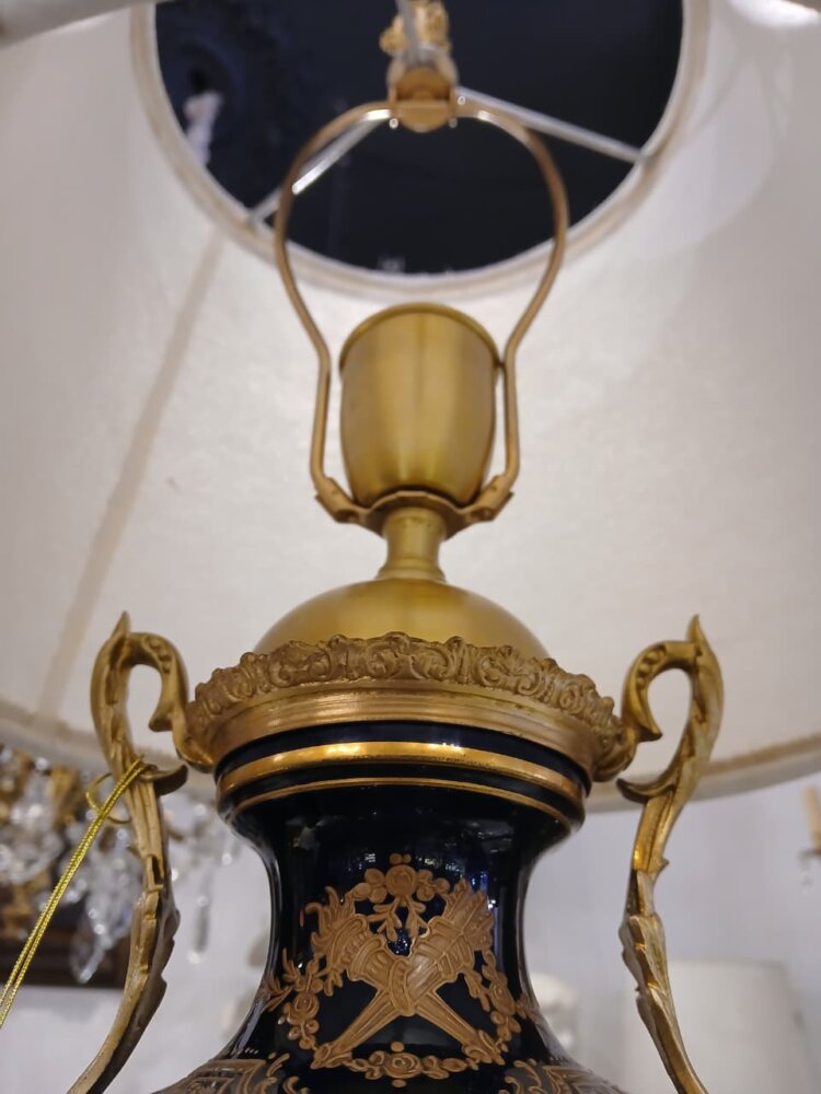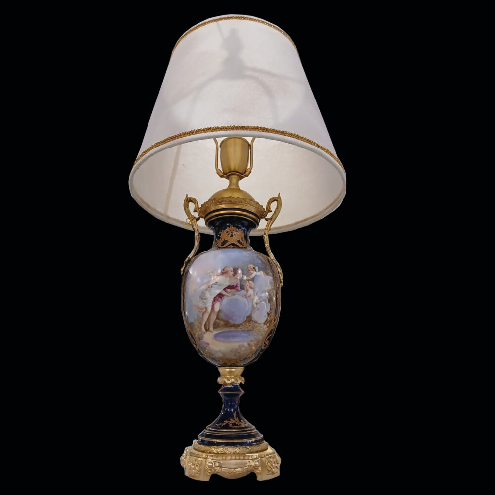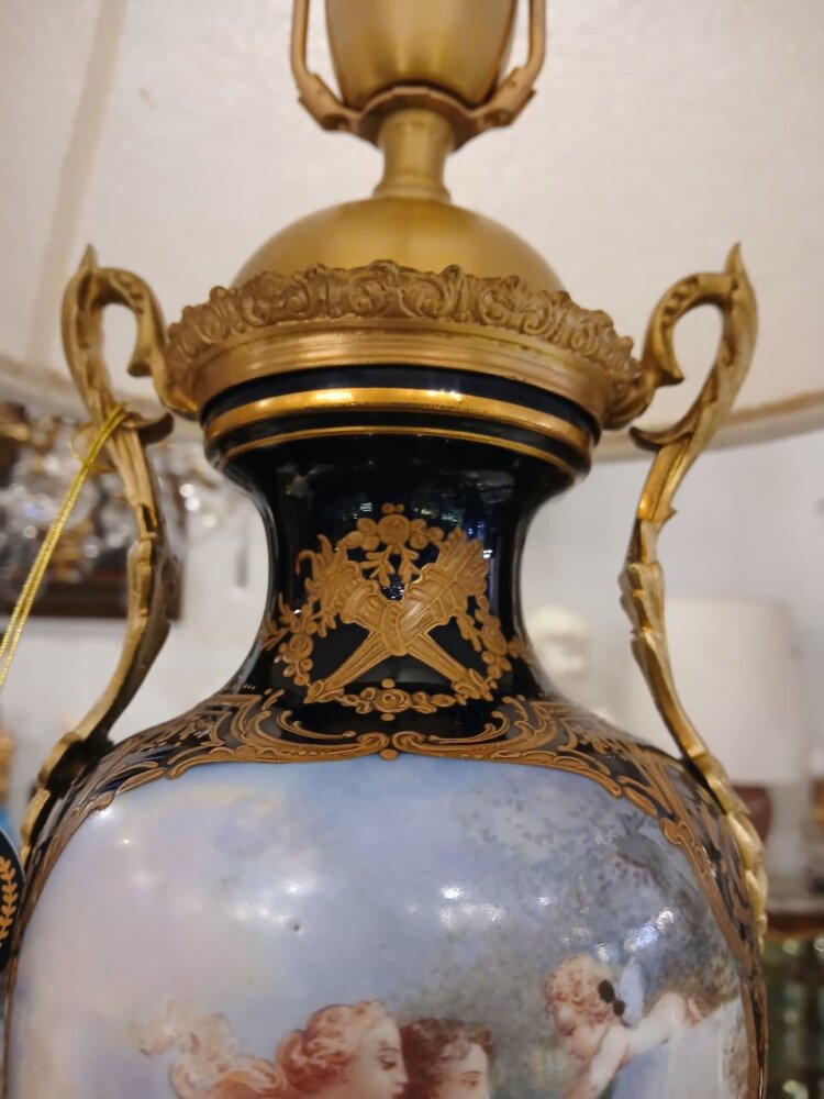 Espectacular Lampara de Mesa Sevres realizada en porcelana con base de bronce y pantalla original. Data de los años 1920, se encuentra en muy buen estado , lista para usar. Ideal para decoración.